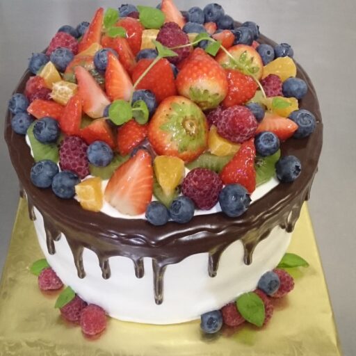 - Kreemikattega tort, puuviljakaunistusega