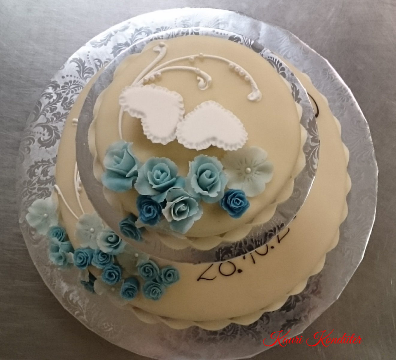 - Kohupiimakreemi tort, martsipanist 3D voolitud kaunistused