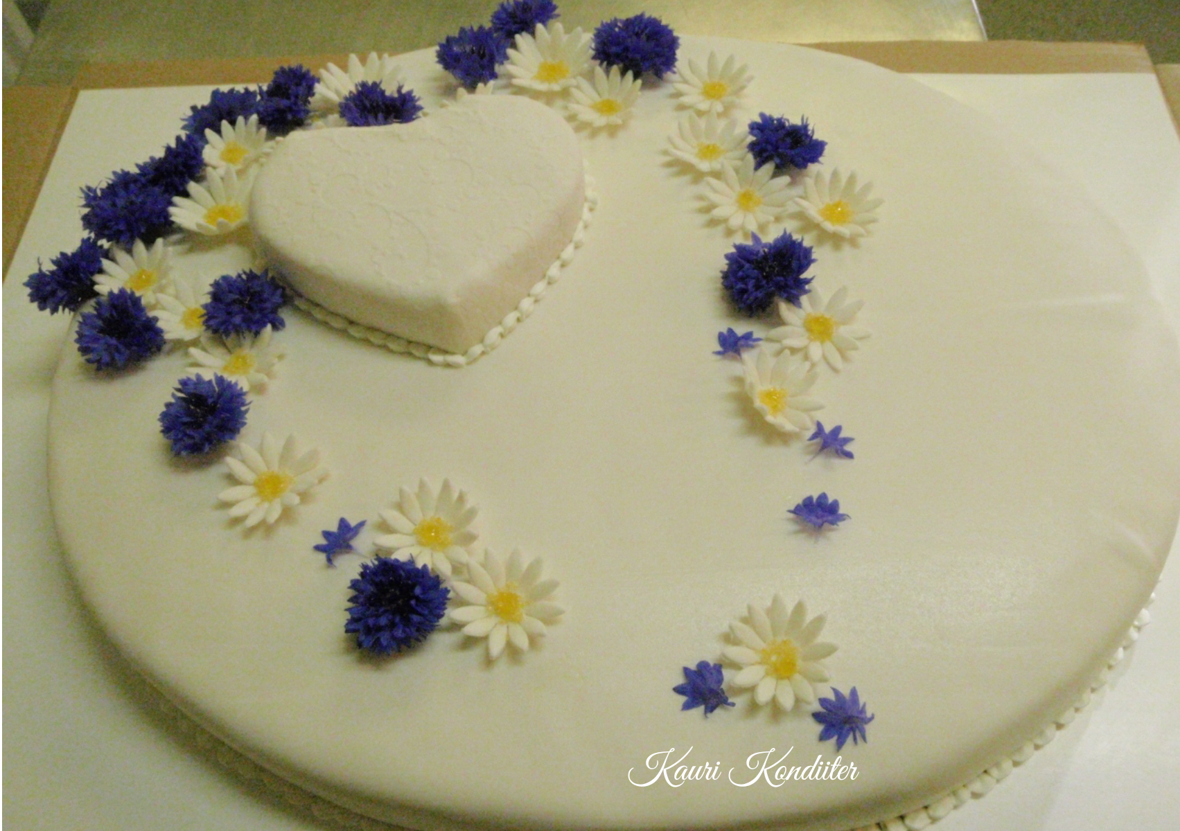 - Martsipanikattega pulmatort, lihtsad lillekesed + rukkililleõied