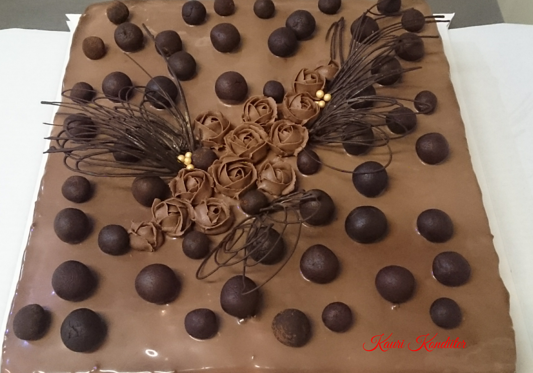 - Kreemikattega tort, šokolaadiganache’ga joonistatud pilt