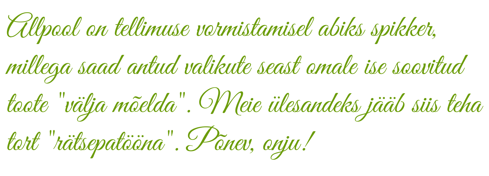 (ühel tellimusvormil saab olla üks toode).